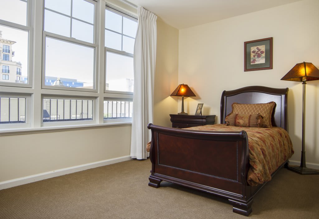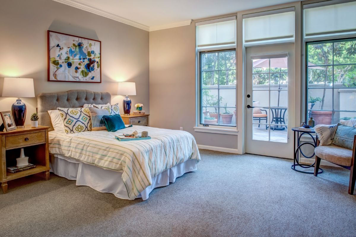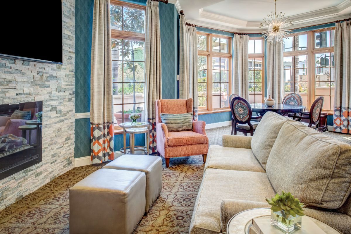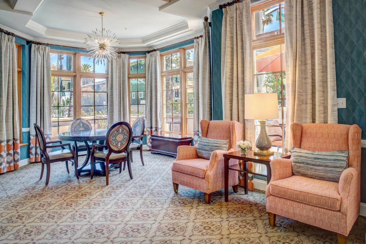 In the quiet elegance of Beverly Hills, Sunrise of Beverly Hills offers a warm and inviting assisted living experience with an attention to luxury and detail. Housed in a modern, five-story building on a tranquil residential street, the communitys interiors exude a comfortable contemporary style. The lobby and lounge areas are furnished like a chic hotel think plush sofas, soft area lighting, and large windows that let in natural light. The color scheme is soothing: creams and blues with accents of rich wood and wrought iron, echoing the nearby Spanish Colonial architecture. Private suites and apartments are bright and spacious, featuring well-equipped kitchenettes, ensuite bathrooms with walk-in showers, and oversized windows or balconies where one can enjoy garden views or California sunsets. Floors are carpeted and cushioned for safety, yet designed with neutral patterns so the overall feel remains upscale.