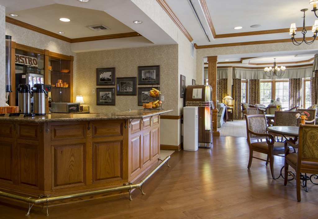 Residents at Sunrise Beverly Hills enjoy a generous array of amenities aimed at comfort and convenience. A talented culinary team prepares three gourmet meals daily; the main dining room offers lovely vistas of the outdoor courtyard garden, and casual cafe stations serve snacks and beverages any time. Fitness and wellness are encouraged with a fitness center, group exercise classes, and a cozy library for quiet reflection or computer use. The community features multiple lounges and a beautiful enclosed garden courtyard with fountain and benches that becomes a peaceful retreat for morning coffee or afternoon tea. For hair and skincare, a modern beauty salon is open throughout the week. Specialized programming is offered by the experienced care team: memory-enhancement programs use reminiscence and music therapy in bright, welcoming rooms designed for stimulation and memory support.