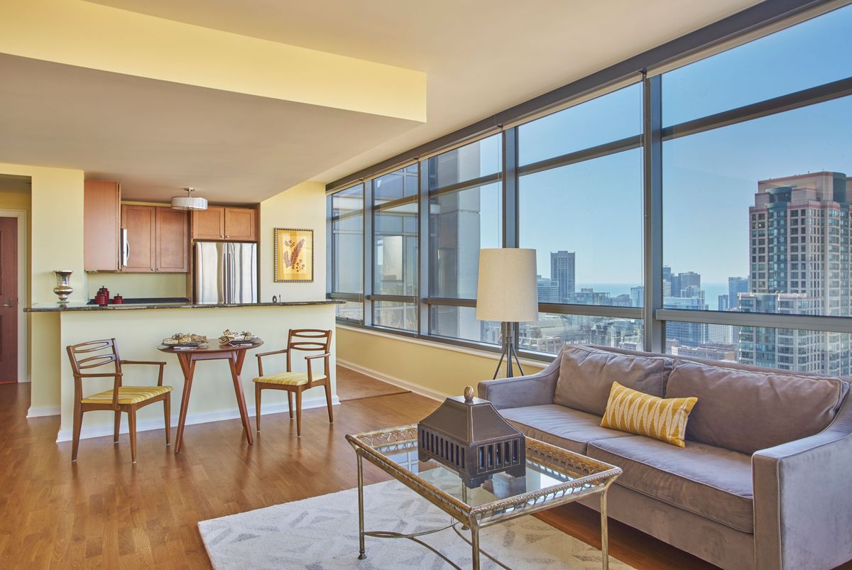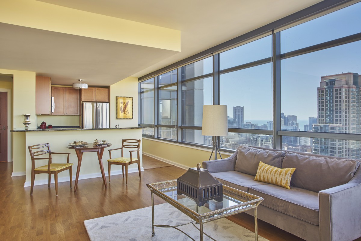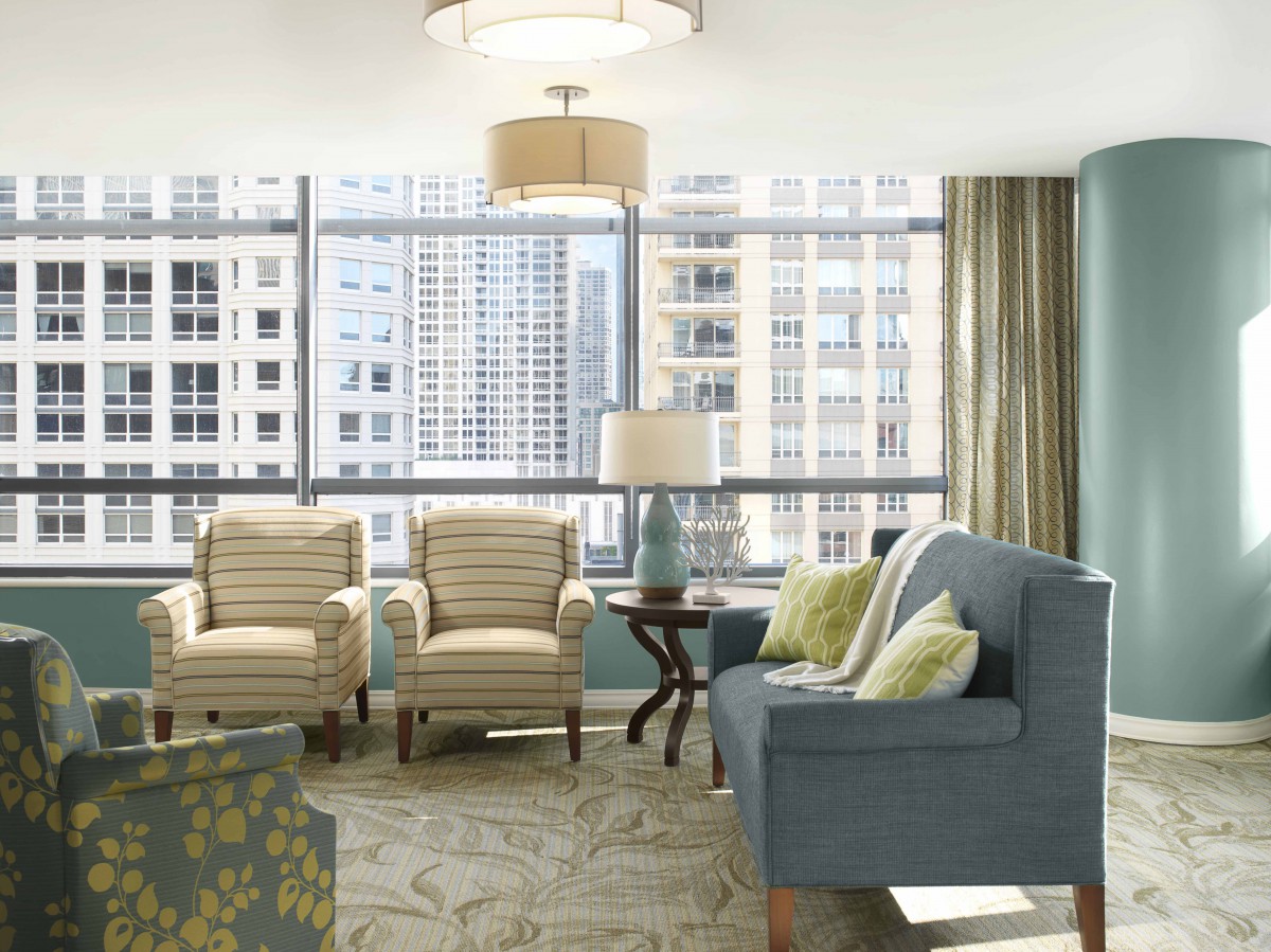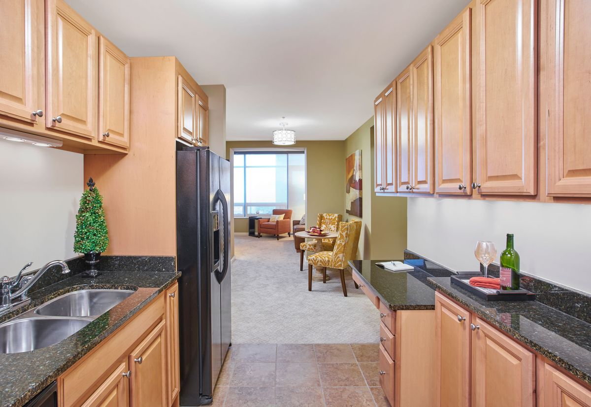 The Clare is a 53-story jewel in the heart of Chicagos Gold Coast, offering an elegant, urban retirement lifestyle. Here, high-rise luxury meets city at your doorstep convenience. Floor-to-ceiling windows in every apartment frame panoramic views of Lake Michigan, Chicagos skyline, and the park. Inside, residences are finished with warm oak floors and natural stone countertops, while designer lighting and rich fabrics create a polished, welcoming ambiance. The buildings dramatic lobby and lounges feel like a boutique hotel, filled with plush seating areas and vibrant art that invite neighbors to gather.