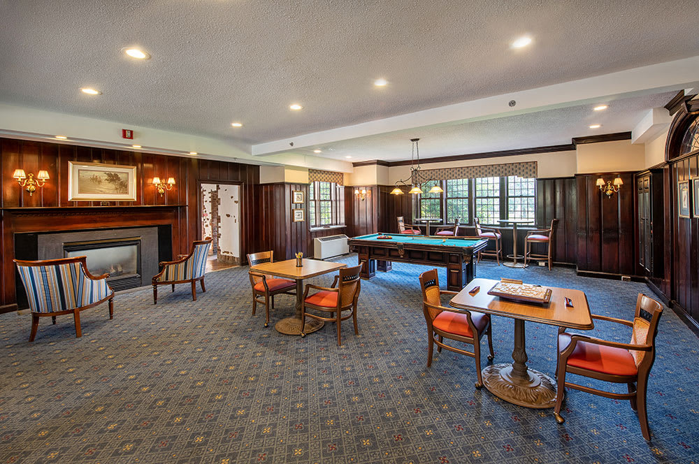 Nestled on 37 picturesque acres in Maplewood, New Jersey, Winchester Gardens feels like an Oxford-inspired English country estate for modern seniors. Manicured lawns, fountains and wooded walking paths wind between charming brick buildings and red-tile-roof cottages. The architecturetall windows, ivy-covered walls, and detailed eavesharkens back to old-world elegance. Inside, common rooms glow with soft light and original stained-glass accents; rich wood paneling, mantel fireplaces, and Persian rugs create cozy gathering spots. Floor plans in this community span from sunlit studios to spacious one- and two-bedroom residences. Each features upscale finishes: granite kitchens, generous closets, and balconies or terraces overlooking gardens or lawns.