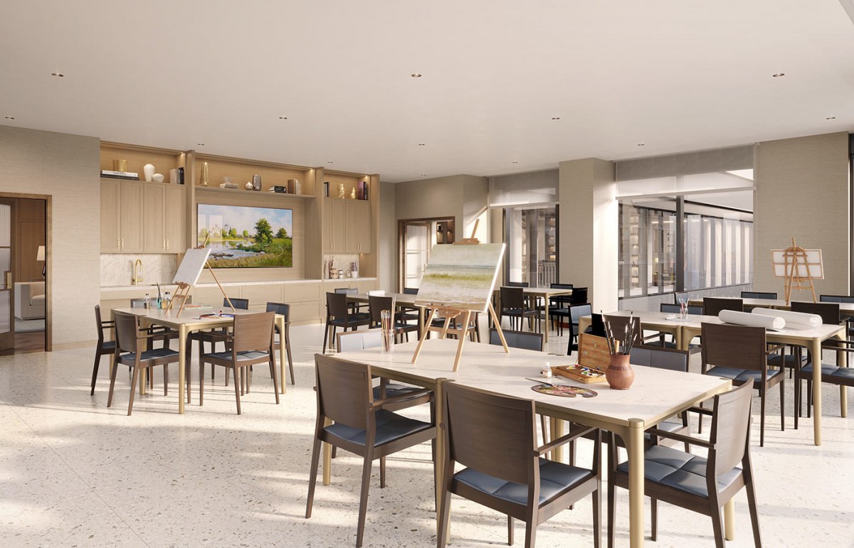 Coterie Cathedral Hill is built around top-tier amenities that bring hotel-level living to seniors. An inviting bistro serves all-day dining with gourmet, seasonally-inspired menus, and a Sunday jazz brunch is a weekly treat. A rooftop terrace with lounge seating invites informal cocktail nights against the city lights. Wellness offerings include a spa and salon, yoga and Pilates studios, and a comprehensive gym. The community also boasts a theater screening current film, a woodwork and crafts studio, and even a demonstration kitchen for cooking classes. Every detail is curated: from the complimentary house coffee in the art-filled lounge stocked snack bars and hydration stations with spa water and healthy treats. Concierge service is available around the clock for arranging everything from Uber rides to medical appointments, adding a layer of ease to daily life.