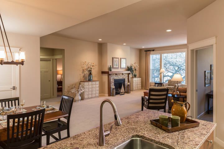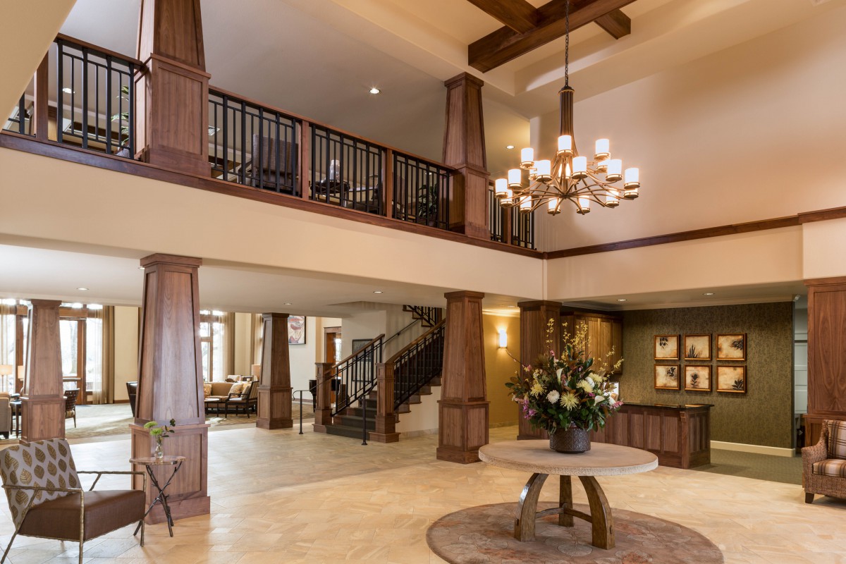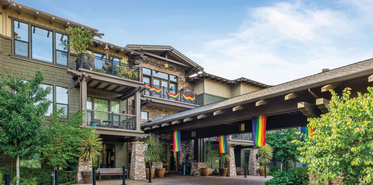 Fountaingrove Lodge in Santa Rosa is a groundbreaking retirement community designed especially for LGBTQ+ seniors and their allies. Set in the rolling hills of Sonoma County wine country, the lodge feels like an upscale country estate combined with a modern retreat. The main buildings architecture is warm and craftsman-like, with stone and timber accents echoing Northern Californias natural beauty. Inside, the design is light-filled and welcoming: open lounges with comfortable seating, fireplaces, and vibrant rainbow art signals both luxury and inclusivity. Residences are gracious and contemporary, from one- and two-bedroom suites to special standalone bungalows. Each features high ceilings, spacious kitchens or kitchenettes, and large windows framing landscaped views. Careful finishes (like hardwood floors, granite counters, and soft rugs) combine style with hominess.