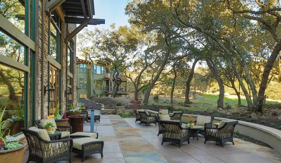 Fountaingrove Lodge offers comprehensive resort amenities with a heartfelt focus on community. Cuisine is a highlight: an acclaimed executive chef leads a culinary team creating innovative menus nightly, served in a bright dining room where large chandeliers and fire features make each meal an occasion. There is a beautiful library and card room, and an on-site winery-themed cafe serving fresh pastries and coffee. For relaxation, amenities include an indoor pool and hot tub overlooking the vineyards, a fitness center with yoga and spinning classes, and a full spa with massage and holistic therapies. A large activities center hosts crafts, lectures and lively dance parties a fitting reflection of the communitys welcoming spirit. Outside, well-tended gardens and courtyards bloom with roses, lavender, and California native plants; shaded patios with seating and a fire pit encourage spontaneous gatherings under the stars.