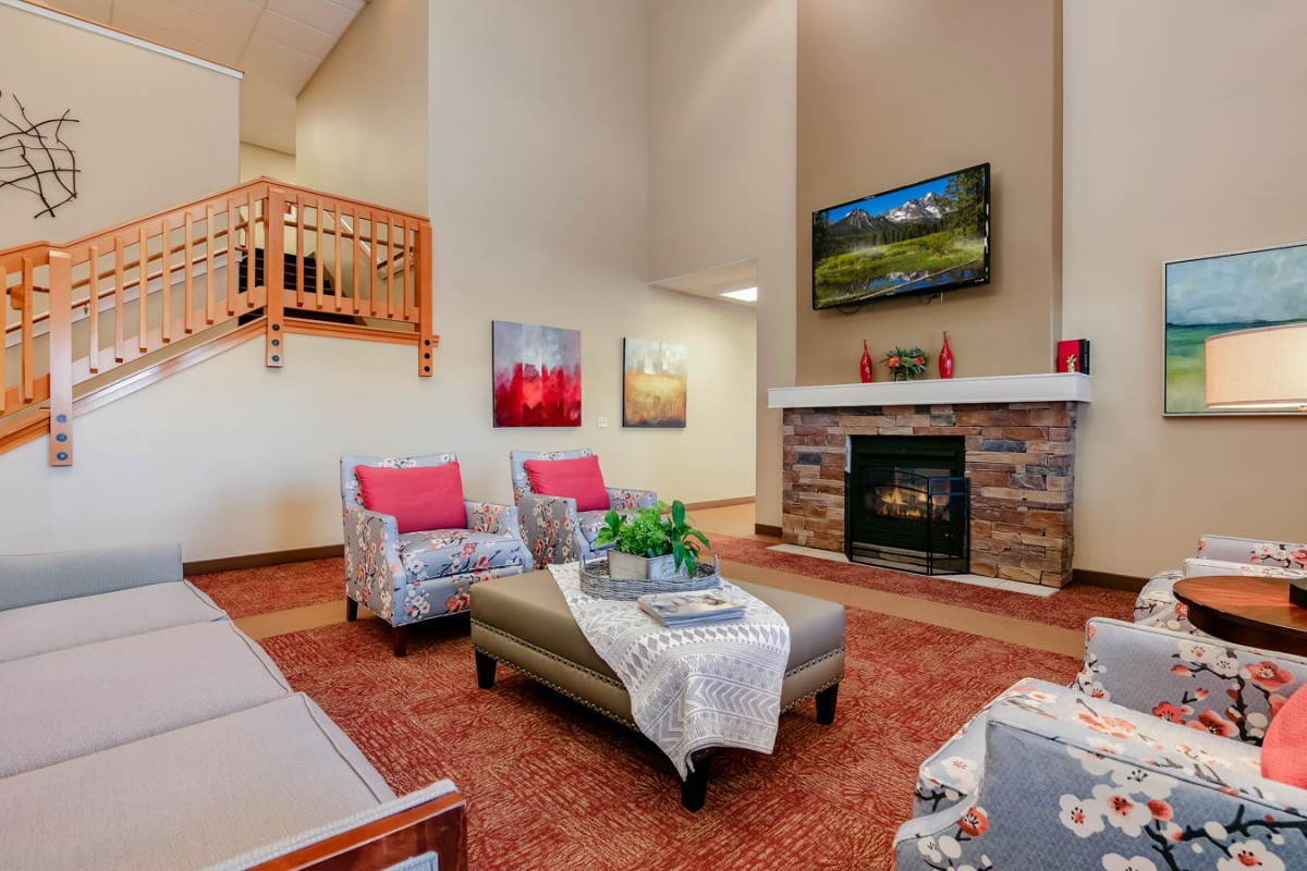 Perched on a sunlit hillside just outside Boise, MorningStar Senior Living of Boise offers a vibrant, resort-like community with sweeping views of the foothills and canyon. The buildings blend naturally with the landscape neutral-hued exteriors and wide porches harmonize with the bright Idaho sky. Inside, the feeling is warm and modern. Wide hallways open into bright gathering spaces: furniture in soft sage and cream, large windows framing mountain vistas, and local photography on the walls give a contemporary lodge atmosphere. Private residences range from cozy studios to large one-bedrooms and two-bedrooms. Each apartment has a full kitchen, in-unit laundry, and spacious bathroom, making it feel like a comfortable home. Warm finishes wood-look floors, granite counters, and vaulted ceilings complement the spectacular outdoor vistas visible from every window.
